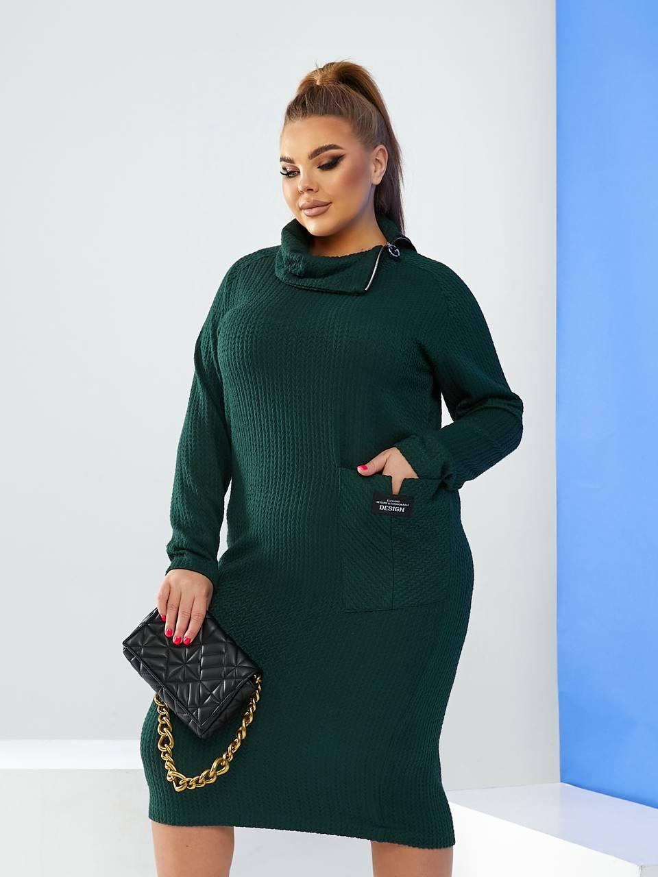 Тепла сукня-міді з коміром-хомутом із структурного трикотажу, батал великі розміри